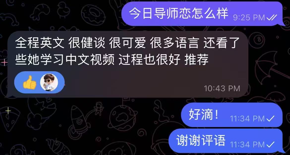 7.聊到他對語言學習很有興趣,是資深duolingo玩家學了6種語言(語言天才),甚至之前去過台灣多次有學過台語,並一起互相玩了duolingo(這段很有趣好笑),也提到有養了3隻貓並互相分享照片,又聊到KPOP話題,喜歡"IVE"的LIZ,(因為我常在追KPOP,互相分享演唱會片段,這邊聊得很開心)