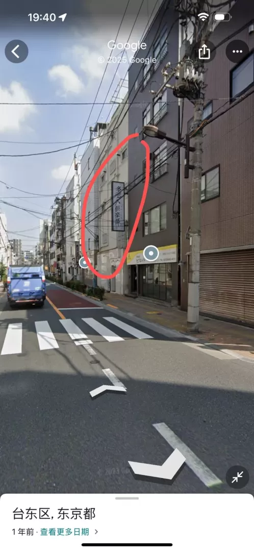 因为不知名的原因谷歌地图搜不到了.直接定位这个黄色公司的位置.旁边就是【多恋人倶楽部】(点击图片查看谷歌)