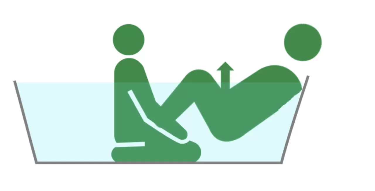让你的对手叉开双腿,配合浴缸水中的浮力,帮助你的对手把胯顶起来~如图