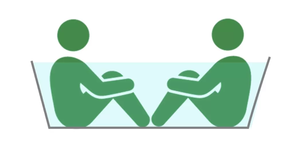 潜望镜需要在浴缸当中进行对决,所以第一步一定是一起泡在浴缸当中,和你的对手面对面坐下~ 如图