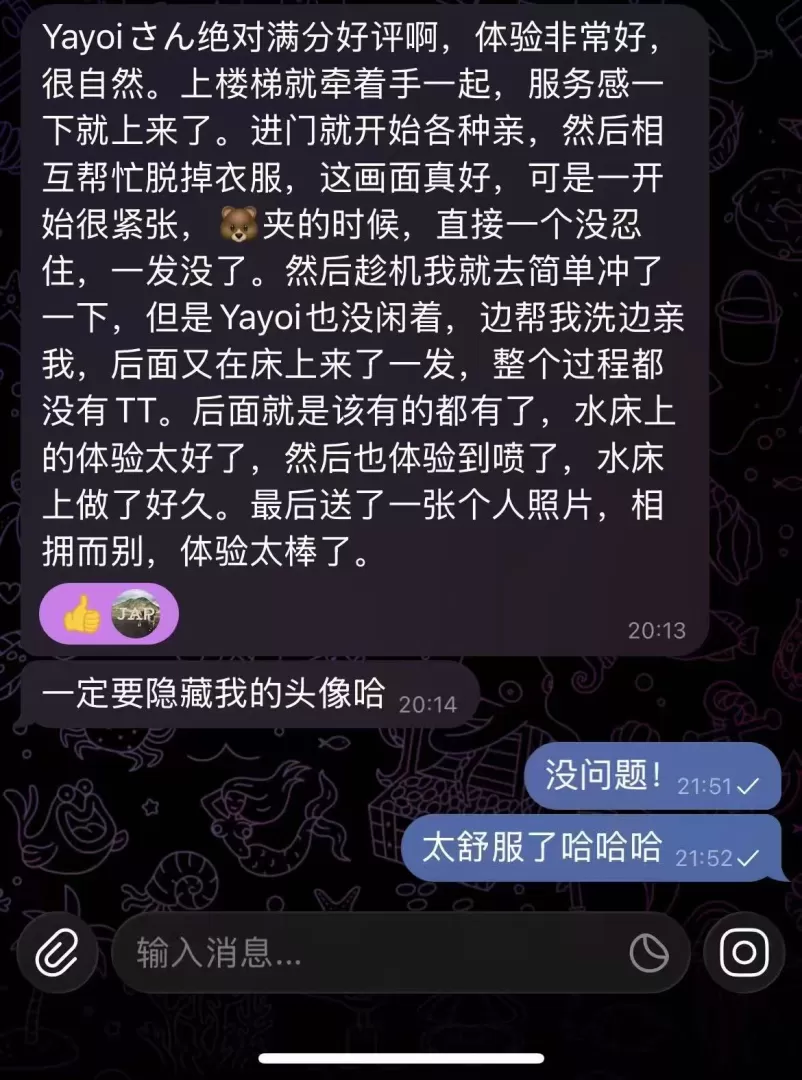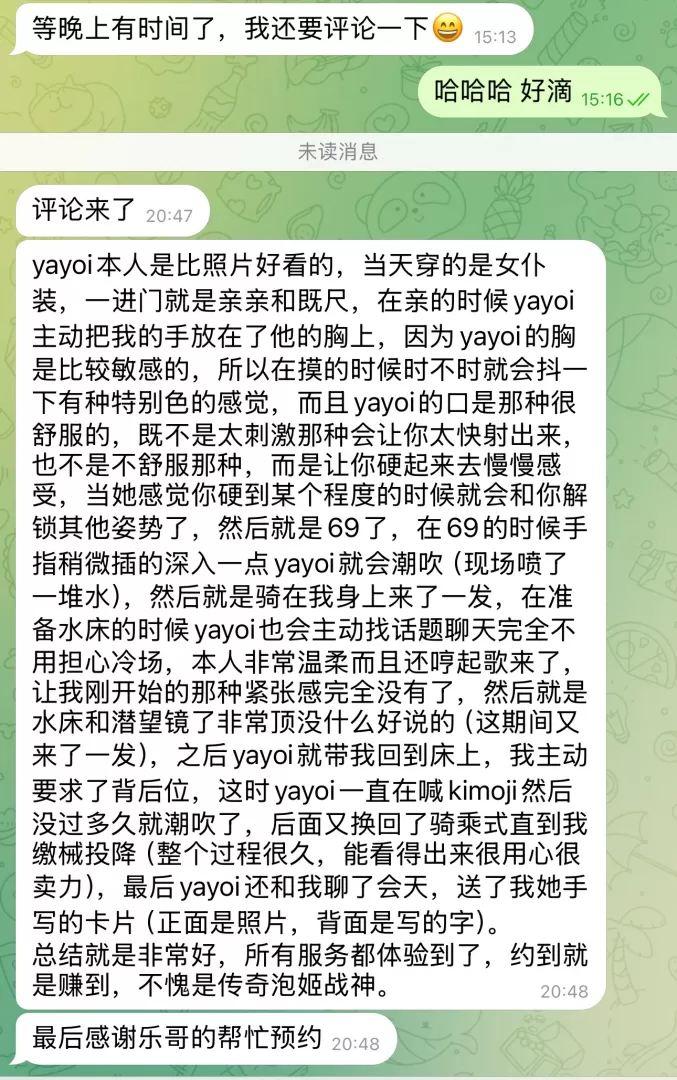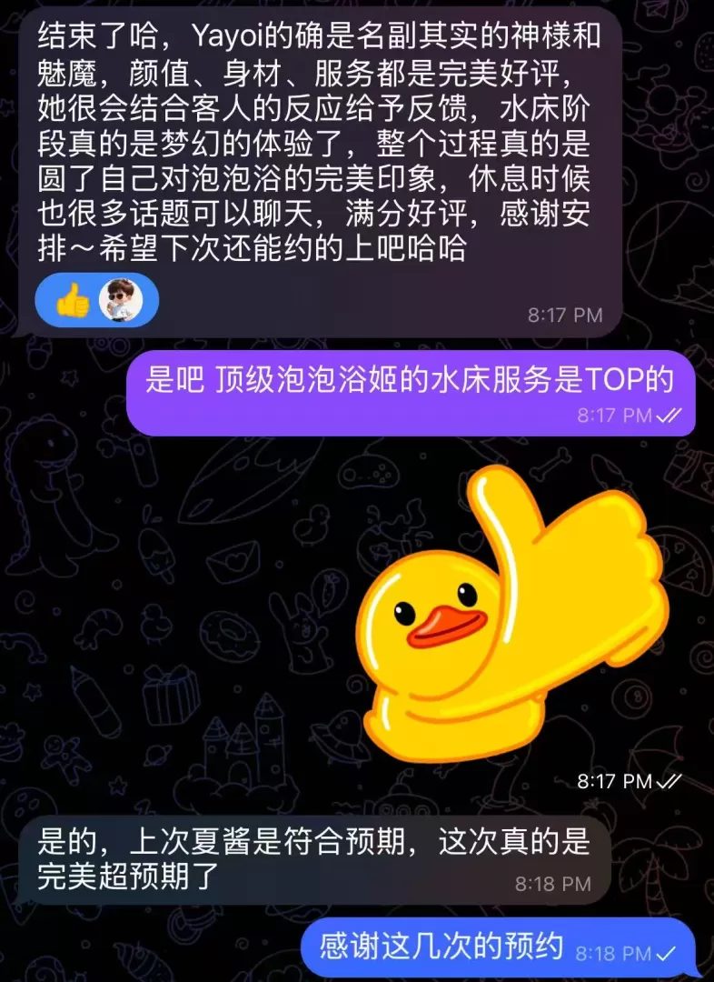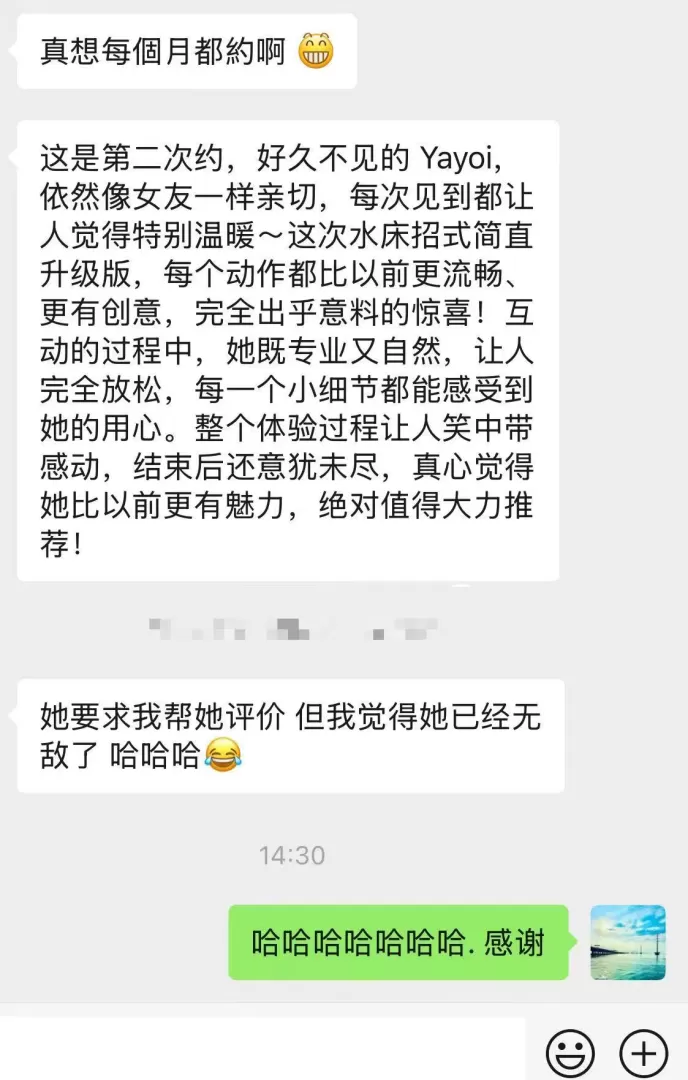 总结下来Yayoi无愧战神称号,颜值、身材、服务以及性爱过程中给到的反馈都是绝对的满分。能够有机会预约到的兄弟完全不用犹豫,绝对值得推掉一切事情去体验一波。