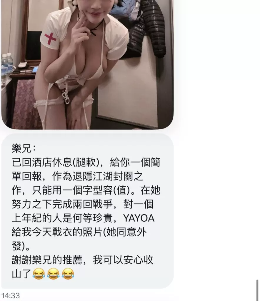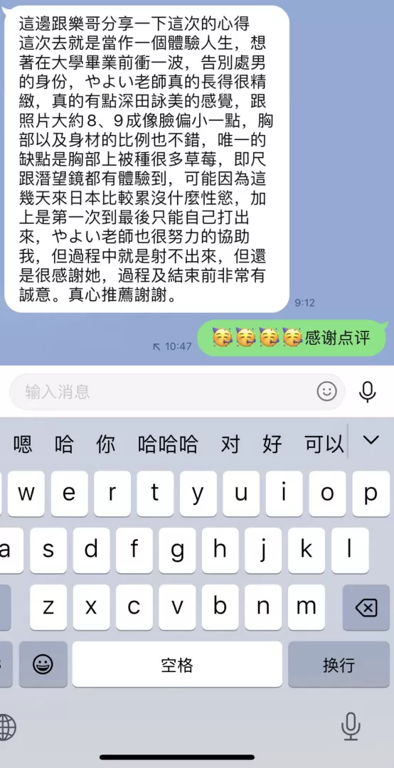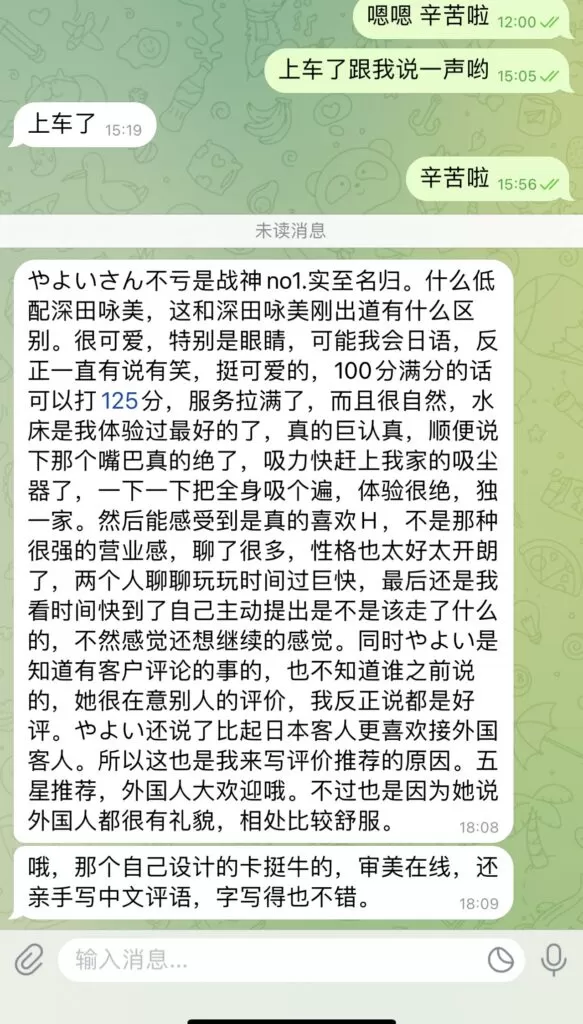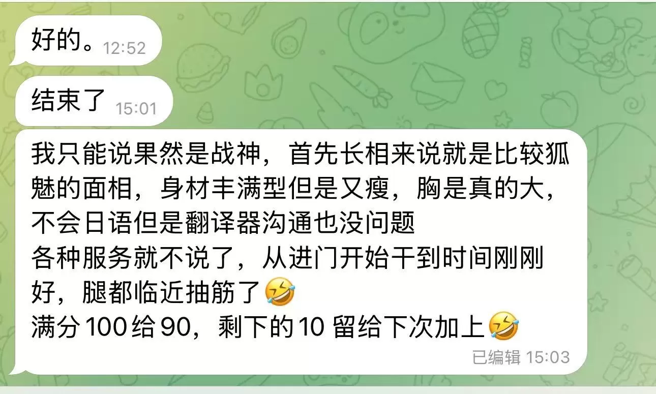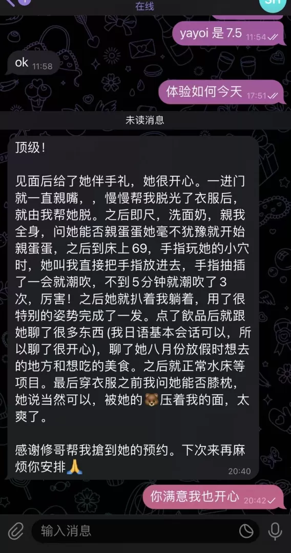 总结下来Yayoi无愧战神称号,颜值、身材、服务以及性爱过程中给到的反馈都是绝对的满分。能够有机会预约到的兄弟完全不用犹豫,绝对值得推掉一切事情去体验一波。