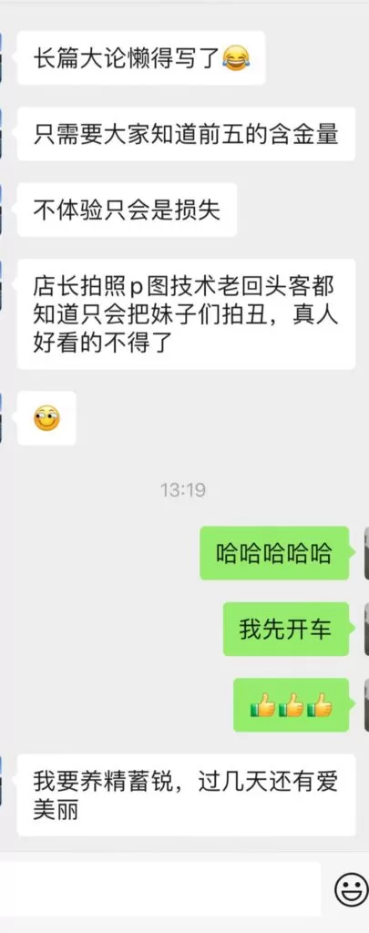 红磨坊毫无疑问第一,有震惊到我,生意超级好,第一次去接送车上5个位子全部坐满了,走进店里,接待人员也是三家最多,且都是年轻小伙子,去见泡姬和离开的时候还会半跪相送;接待室也最宽敞,nb的是几乎都坐满了。