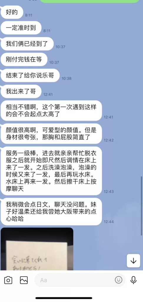 进入店里,红磨坊这里的黑服非常的多,店面规模也要比AileDore大至少一倍。进入等待室发现能容纳大约15人的房间基本满了,大部分都是日本本地人,确实能看出来红磨坊这家店非常火爆,很难预约。流程上基本都是一样的,点饮料付钱,过一会黑服进来喊名字。Yayoi当天直接穿了一身爆辣奶牛装在门口迎接(参考乐哥网站Yayoi帖子的封面照)。这里说一下红磨坊的房间也要比AileDore大一些,而且还有一个小的单人沙发,可以解锁更多场景。进入房间后直接开始亲,边亲边脱衣服随后开始了即尺。Yayoi在口交时会一直用极具妩媚的眼神看着你,魅魔属性拉满。随后被她推倒在小沙发上,被她直接来了一手巨乳洗脸。这里说一下有其他的体验报告提到的Yayoi乳晕大甚至没有乳头的问题,她的乳晕是会大一些但个人觉得完全在正常范围内(毕竟她胸也太大了),乳头是属于不太凸起的那种,也是有乳头的并且非常敏感,挑逗乳头她会控制不住地抖动。接下来被她引导到床上开始一番战,这里先进行了一波69,她直接展示了一波招牌潮喷,喷了我一身。然后直接转过身来开始骑乘位,拿起几把就往下面塞。Yayoi的体力非常好,过程中先是又喷了一波水,我以为要换姿势让她休息一下结果她拔出几把让水喷出来后立刻又塞回去继续摇,直到摇射。最后拔出来的时候她大量的水一出来,场面相当震撼。休息期间Yayoi会非常积极地拿翻译机来聊天找话题,这里聊起她之前在AileDore工作的一些事情,问我在AD找过谁。我就说了一个之前体验最好的导师恋,她说恋是那里的泡泡浴老师,她也是泡泡浴的老师但是她比较忙所以上的课会少一些。体验下来这二位的泡泡浴水平也绝对是顶级的,无愧导师称号。接下来在浴缸里进行了一波潜望镜项目,同时Yayoi在浴缸里直接就握着几把插入了进去,解锁一波浴缸性爱体验。这次没有进行发射,而是引导到水床上进行最精彩的泡泡浴环节。Yayoi的水床技术也是顶级,大肉垫蹭遍全身体验拉满,同时嘴上功夫也是顶级,吸遍全身,舔脚毒龙全都有。最后仍然以女上位的形式完成了发射。整个过程完全由Yayoi主导,绝对的顶级享受。临近结束Yayoi现场用中文写了一张纪念小卡片,正面她的写真照搭配“战神やよい”几个字,非常用心地进行了准备。
